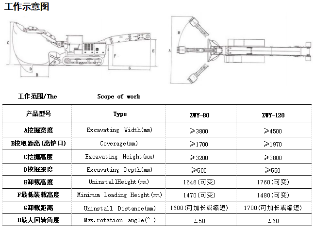 本机主要用于煤矿、非煤矿巷道的装载作业,设备适用于≤35°狭窄坡度巷道使用;