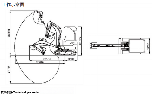 ■采用最小回转结构,当机体上车回转时其尾部也不会超出车宽,因此更适用与井下狭小空间作业。